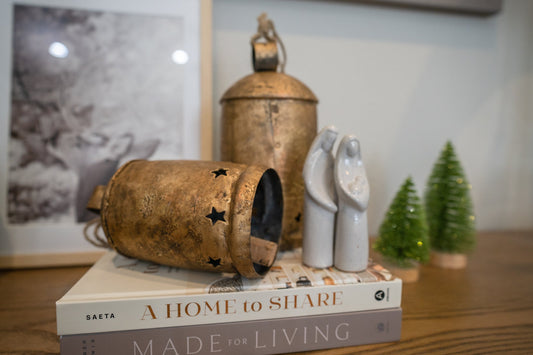 Metal Bell on Jute Rope with Star Cut-Outs 3-3/4" Rnd x 8-1/2"H