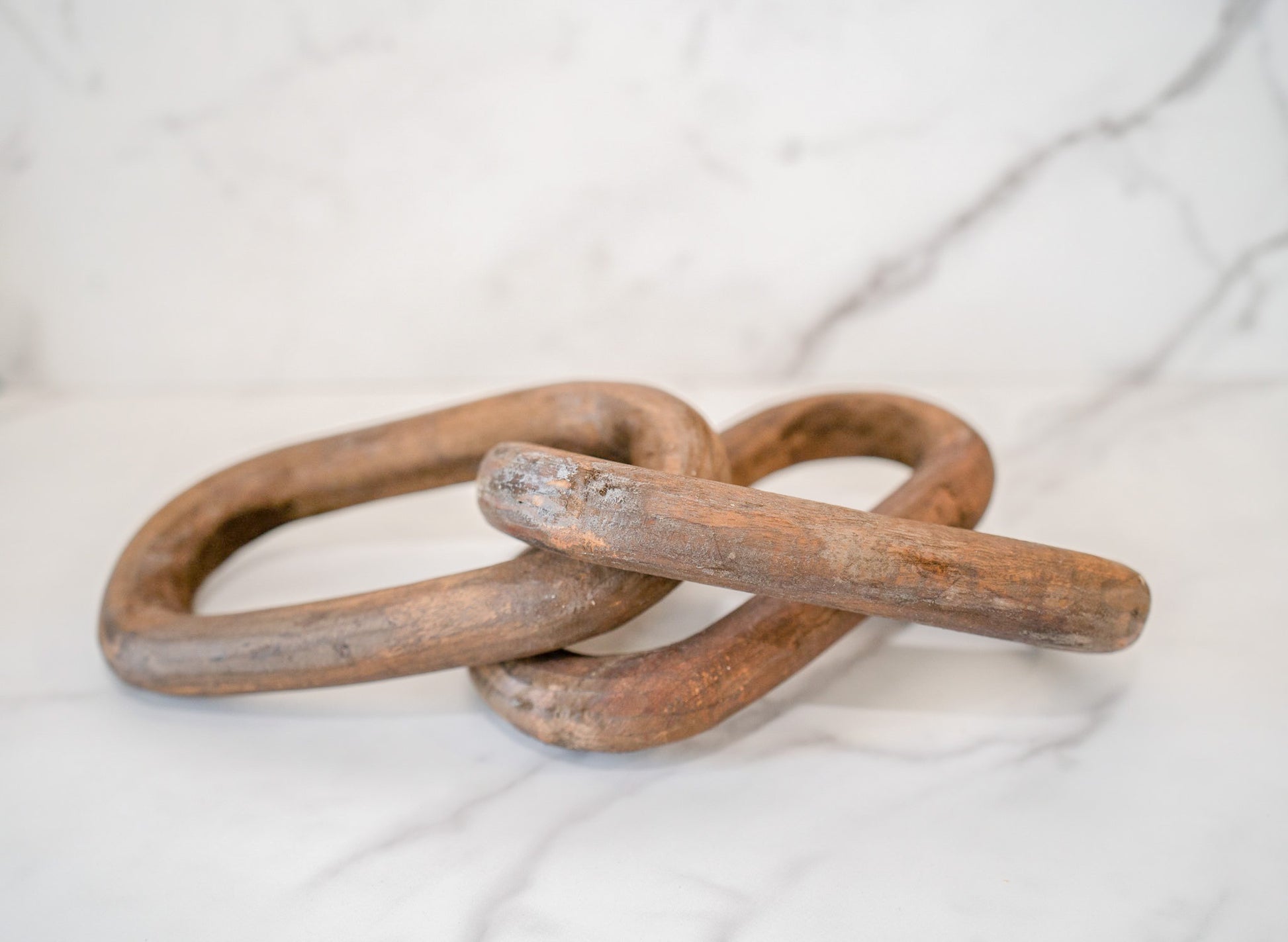 This wood chain is the perfect accessory to any home. It is made out of reclaimed wood and has 3 links. This product is perfect for putting on shelves, in a bowl on a coffee table, or anywhere in your home to add depth and warmth. This piece has many different possible uses, but each of them will bring style to any room.